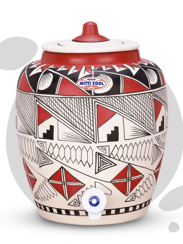 Earthen Clay Water Pot 11 Litre Warli Timpany Design